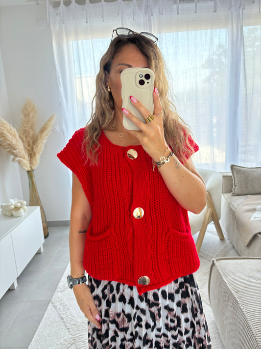 Pull sans manches à boutons dorés CLEM | ROUGE