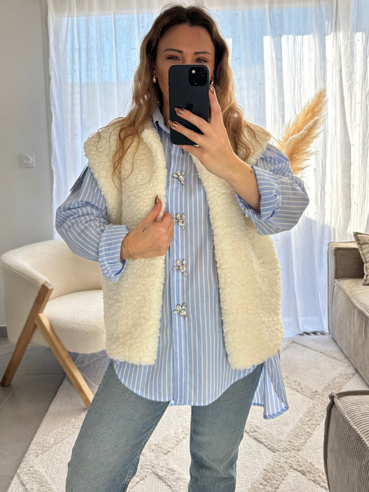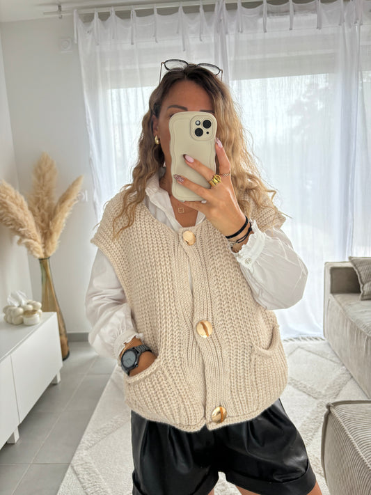 Pull sans manches à boutons dorés CLEM | ÉCRU