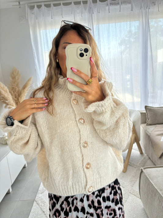 Cardigan à boutons dorés NINA | CRÈME